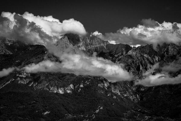Figura 7 – Una montagna verde in estate a mezzogiorno, non è un soggetto particolarmente interessante nè particolarmente ben illuminato ma basta decidere di scattare in BN per evidenziare i contrasti e ottenere qualcosa di più interessante.  ph S Michelin.