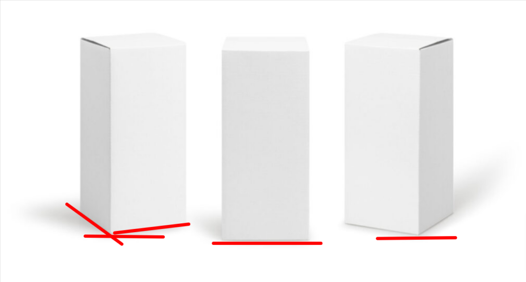 Come puoi vedere nell’immagine, osservando la base dell’oggetto puoi capire se esso è orientato rispetto a te secondo una prospettiva centrale (un lato è tutto parallelo a te, come nel solido centrale) oppure accidentale (in primo piano c’è un angolo e tutti i lati dell’oggetto sono accidentali rispetto al tuo sguardo)