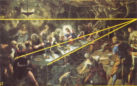Nella prima l’impianto compositivo spaziale è strutturato secondo le regole della prospettiva centrale, ma con il punto di fuga (punto a cui convergono tutte le linee della profondità) esattamente centrale al dipinto.