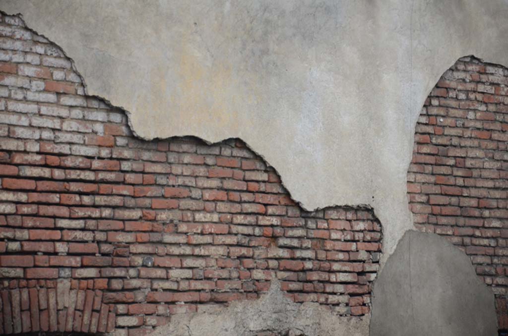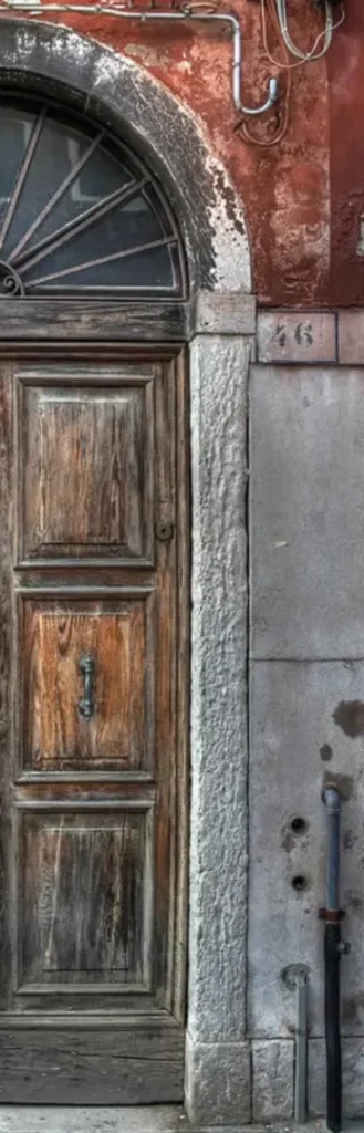 Realizziamone 2 insieme: il legno di un portone antico e un muro di mattoni con intonaco scrostato.