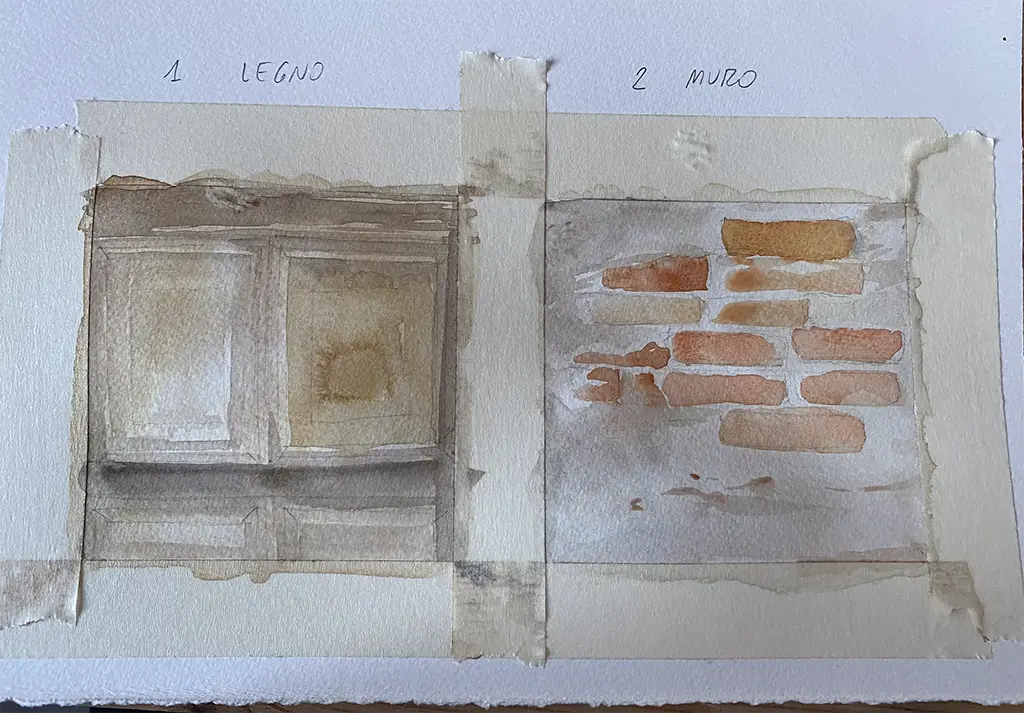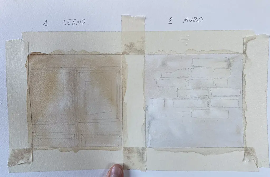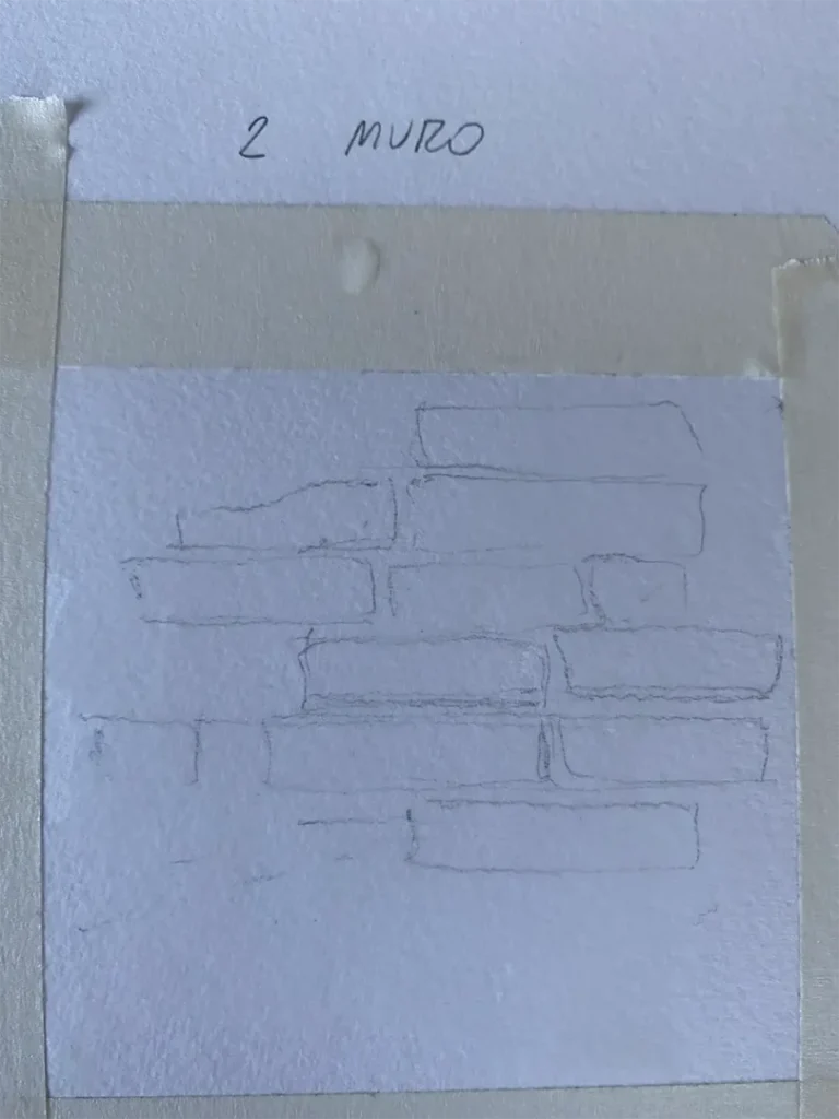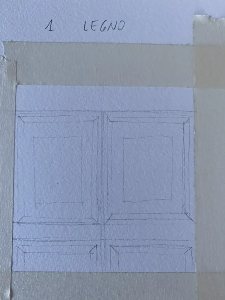 2 – Se il dettaglio su cui volete esercitarvi presenta un motivo o un modulo, si può impostare un semplice disegno preparatorio; se fosse solo ad esempio una superficie granulare, non serve disegnare nulla, si procederà solo con il colore.